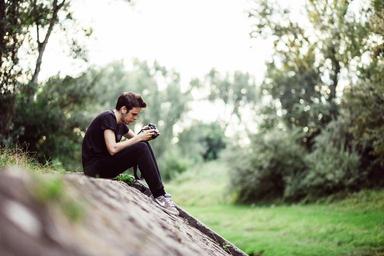 Keywords: photographer sitting young camera professional technology photography hobby man guy photographic outdoor nature graffiti suburb
