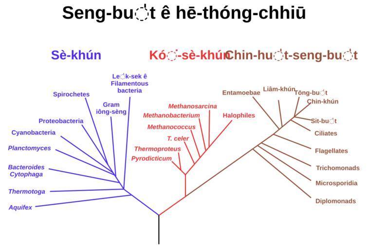 | Keywords: Phylogenetic tree-nan.svg A phylogenetic tree of living things based on RNA data and proposed by Carl Woese showing the separation of bacteria archaea and eukaryotes Trees constructed with other genes are generally similar although they may place some early-branching groups very differently thanks to long branch attraction The exact relationships of the three domains are still being debated as is the position of the root of the tree It has also been suggested that due to lateral gene transfer a tree may not be the best representation of the genetic relationships of all organisms For instance some genetic evidence suggests that eukaryotes evolved from the union of some bacteria and archaea one becoming an organelle and the other the main cell http //nai arc nasa gov/library/images/news_articles/big_274_3 jpg NASA Astrobiology Institute found in http //nai arc nasa gov/news_stories/news_detail cfm ID 274 an article Original September 2006 German version March 2014 Original Eric Gaba Sting German version Timk70 Hokkein version Luuva Public domain Other versions/Phylogenetic tree translation possible fr French Wikipedia Sting Phylogenetic tree of life Hokkien |