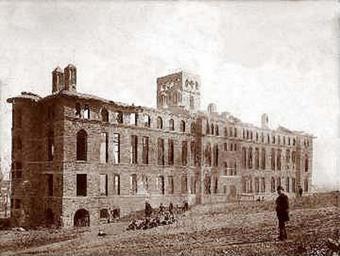 | Keywords: Physical Laboratory (Lewis) fire 1900.jpg Lehigh University's Physical Laboratory was built in 1895 but burned down on April 6 1900 It was immediately rebuilt using the same foundations and is now known as Lewis Lab The fire was reported in the Allentown Morning Call the following morning All that remains of that magnificent grey stone structure known as the physical laboratory building of the Lehigh University in south Bethlehem are four walls and just how intact these are is a matter of conjecture and cannot be determined for some time to come <br /><br />The fire started at 8 30 o'clock yesterday morning in the dark room of the photographing and developing room situated in the east wing of the building on the first floor alongside the elevator and it is no doubt to the latter that the destruction is due At the hour mentioned above Prof Franklin was engaged in the photographic room in a series of experiments trying to photograph an electric spark In his experiment he used flash powder and for some reason or other there was an explosion The sparks from the explosion set fire to a curtain and other drapery and in a minute the room was in a blaze The elevator shaft acted as a chimney for the flames and so rapid was the spread of the fire that some of the students got out barely in time <br /><br />The physical laboratory was one of the best-equipped buildings on the ground and filled with costly machinery from top to bottom Its dimensions are 235x44 feet It is four stories high and was erected in 1892 by the late J S Allam the well- known contractor at a contract price of 74 000 The loss on the building and its equipment for scientific study and research amounts to 150 000 The Morning Call 1900-04-06 Author File Physical Laboratory Lewis 1896 jpg PD-old-100 Lehigh University Black and white photographs of buildings Built in Pennsylvania in 1895 April 1900 in the United States Fire-damaged buildings in the United States 1900 in Pennsylvania Photographs taken with flash powder Physical laboratories |