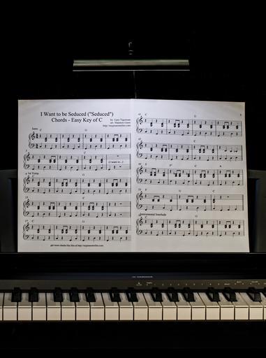 Keywords: piano lesson music keyboard piano pianist practice light darkness music stand music score sheet music dark