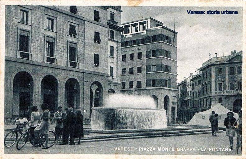 Keywords: La fontana di piazza Monte Grappa. A destra l'imbocco di corso Vittorio Emanuele II (ora Matteotti) e palazzo Mascardi/Pini (ing. Camillo Lucchina, 1929). varese piazzamontegrappa