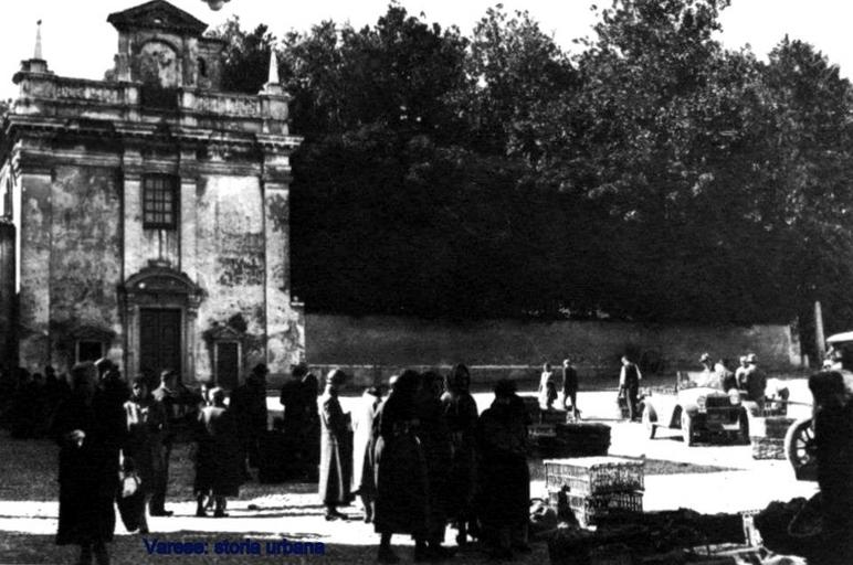 Keywords: Piazza Sant'Antonio (ora della Motta). A destra della chiesa di Sant'Antonio (arch. Giuseppe Bernasconi, 1613-14) il muro continuo di villa Mirabello chiude ancora la piazza. varese