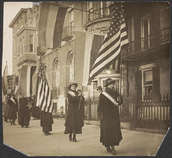 Keywords: Picket line-- Feb. 14, 1917 160018v.jpg Women pickets in suffrage procession down city sidewalk Two hold American flags three hold suffrage color banners and one a banner with text obscured Lead woman Hazel Hunkins-Hallinan carrying American flag wears sash that reads Voter Two men stand by in background against fence watching the pickets Title transcribed from item Alternate versions of same photograph are captioned Sentinels Leaving Headquarters for Daily guard at the White House Feb 1917 and Picketers leaving headquarters for daily White House patrol Feb 1917 Cropped version of the photograph published in The Suffragist 6 no 1 Jan 5 1918 7 Caption Line Leaving Headquarters on Woman Voter's Day 1 photograph print 8 x 8 75 in accession number Call Number Location National Woman's Party Records Group I Container I 160 Folder Pickets 1917 Source Collection Records of the National Woman's Party institution Library of Congress Manuscript Division LOC-image mnwp 160018 PD-old suffragettes Suffragettes wearing fur Fur fashion in 1917 February 1917 in Washington D C Demonstrations and protests in Washington D C |