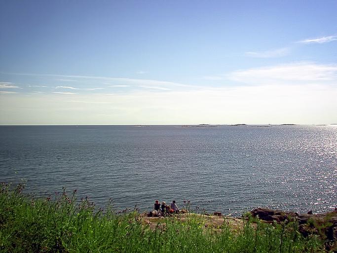 Keywords: picnic sea beach horizon sky blue clouds suomenlinna helsinki finnish