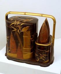 View Original: | Picnic set with sparrow and bamboo, Japan, Meiji period, 1868-1912, wood, black lacquer, gold and silver maki-e, varnish, mother-of-pearl - Linden-Museum - Stuttgart, Germany - DSC03559.jpg (-3628x4399) | |||