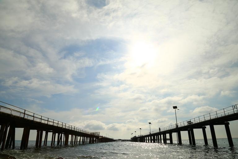 Keywords: pier dock bridge water ocean sea sky clouds sunshine landscape nature