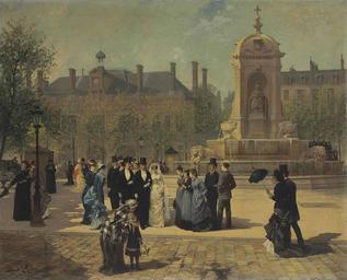 Keywords: Pierre-Marie Beyle - The Wedding Procession.jpg Artwork Creator Pierre-Marie Beyle 1879 oil on canvas cm 95 3 118 2 place of discovery object history Mrs Lineweaver New York circa 1930 <br /> Patricia O'Brien Shaw New York <br /> Thence by descent to the present owner exhibition history credit line Beyle 1879 signature/date lower left ~ accession number place of creation 5786710 2841 57 New York 28 April 2014 Custom license marker 2016 01 09 PD-old-auto-1923 1902 Uploaded with UploadWizard Pierre-Marie Beyle Wedding processions Paintings of wedded couples Christian wedding in art Marriage in France Wedded couples in France 1879 weddings 1879 oil on canvas paintings Squares in France Squares in art 19th-century wedding in painting Fountains in art