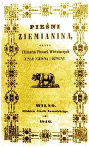 | Keywords: Pieśni ziemianina przez tłumacza Piosnek wieśniaczych z nad Niemna i Dźwiny 1846.jpg  be-tarask «Песьні дзедзіча ад тлумача Сялянскіх песень з-пад  ёмана і Дзьвіны» Ян Чачот 1846 Вільня http //novogrudok iatp by/text/text_AsobiChachot htm Author 1846 Jan Czeczot PD-old-100 |