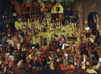 | Keywords: Pieter Bruegel d. Ä. 066b.jpg  Artwork de Serie der sogenannten bilderbogenartigen Gemälde Szene Streit des Karnevals mit der Fastenzeit en The Fight Between Carnival and Lent Le Combat de Carnaval et Carême pl Wojna Postu z Karnawałem Битва между ка навалом и постом Oil Wood cm 118 164 de Wien de Kunsthistorisches Museum Gemäldegalerie de Signatur Bez links unten auf einem Stein BRVEGEL V und E ligiert 1559 Inv -Nr GG_1016 Provenienz vermutlich Rudolf II ; 1748 aus der Schatzkammer in die Galerie Es gibt mehrere Kopien nachzulesen bei Klaus Ertz Pieter Brueghel der Jüngere Die Gemälde Bd 1 Lingen 1998/2000 Kat nr 183-186 S 253f Eine befindet sich im Musées Royaux des Beaux-Arts de Belgique Kat nr E 183 und gilt als eigenhändig - d h Pieter Brueghel d J - eine weitere wurde am 31 5 1989 bei Christie's in New York versteigert E 185 und gilt als Werkstattarbeit Ein weiteres Bild in Privatbesitz E 186 gilt als eigenhändig Die Kat nr E 184 ist ein seit dem 2 Weltkrieg verschollenes Bild aus Krakau Muzeum Narodowe w Krakowie 1937 wurde es von Stanislaw Ursyn-Rusiecki dem Museum gestiftet source 1559 Creator Pieter Bruegel d Ä PD-old-100 Other versions 100px The Fight Between Carnival and Lent Kunsthistorisches Museum original upload log wikitable date/time username resolution size edit summary ---- 22 01 14 September 2006 User Andreagrossmann <a href http //upload wikimedia org/wikipedia/commons/3/39/Pieter_Bruegel_the_Elder_-_The_Fight_between_Carnival_and_Lent JPG ><img alt Thumbnail for version as of 22 01 14 September 2006 src http //upload wikimedia org/wikipedia/commons/thumb/3/39/Pieter_Bruegel_the_Elder_-_The_Fight_between_Carnival_and_Lent JPG/120px-Pieter_Bruegel_the_Elder_-_The_Fight_between_Carnival_and_Lent JPG width 120 height 88 border 0 /></a></td><td>781×574 82 KB <nowiki>Pieter Bruegel the Elder - The Fight between Carnival and Lent 1559 Oil on panel <a href /w/index php title Category Pieter_Bruegel_d _ C3 84 action edit redlink 1 class new title Category Pieter Bruegel d Ä page does not exist >Category Pieter Bruegel d Ä </a></nowiki>  |