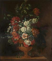 | Keywords: Pieter Casteels III - Tulips, poppies, delphiniums, lilac and other flowers in a gilt-mounted ormolu vase on a wooden ledge.jpg Artwork creator Peter Casteels III en Tulips poppies delphiniums lilac and other flowers in a gilt-mounted ormolu vase on a wooden ledge 1st half of 18th century http //www bonhams com/auctions/11914/lot/162 Oil canvas cm 92 79 Sold by Bonhams on 7 December 2005 in London as lot 162 Other versions PD-old-100 Peter Casteels III 18th-century still life paintings in private collections 1700s still life paintings |