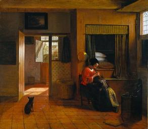 Keywords: Pieter de hooch moeder ontluist haar kind.jpg Artwork creator Pieter de Hooch bedstede Further to the right a high chair To the left a dog sits on the tiled floor looking towards an open window in the adjacent room Over the door hangs a small landscape painting Binnenkamer met een moeder die het haar van haar kind ontdoet van luizen bekend als 'Moedertaak' Interieur met rechts moeder en kind zittend voor een bedstee Rechts een kinderstoel links zit een hond op de plavuizenvloer en kijkt naar het openstaande raam in het achterliggend vertrek Boven de deur een schilderijtje met een landschap ~ 1658-1660 Ucfirst Oil on canvas cm 52 5 61 Institution Rijksmuseum Amsterdam LangSwitch Gallery of Honour Eregalerij place of discovery object history A M Hogguer-Ebeling Amsterdam 19 by 1854 Adriaan van der Hoop 1778-1854 Amsterdam ProvenanceEvent 1854 bequest LangSwitch die Stadt Amsterdam the city of Amsterdam à la ville d'Amsterdam de Stad Amsterdam Adriaan van der Hoop Amsterdam ProvenanceEvent 1885-06-30 loan LangSwitch el das the el au het ~ Rijksmuseum Amsterdam Amsterdam LangSwitch die Stadt Amsterdam the city of Amsterdam la ville d'Amsterdam de Stad Amsterdam exhibition history Pieter de Hooch 1629-1684 22 The Golden Age Highlights from the Rijksmuseum Kobe La ragazza alla spinetta di Johannes Vermeer e gli artisti di Delft 218 Rembrandt and the Golden Age Highlights from the Rijksmuseum Amsterdam 74 Vermeer Rembrandt and the Golden Age of Dutch painting 226-227 L'âge d'or hollandais 125 296-297 credit line LangSwitch auf dem Kinderstuhl on the children's chair op de kinderstoel ~ accession number SK-C-149 place of creation Northern Netherlands geheugenvannederland nl http //geheugenvannederland nl Home http //geheugenvannederland nl/ /en/items/RIJK01 SK-C-149 Info http //resources21 kb nl/gvn/RIJK01/RIJK01_M-SK-C-149-00_X JPG Pic Een moeder die het haar van haar kind reinigt bekend als ˜Moedertaak ™ Rijksmuseum SK-C-149 jpeg Version from www rijksmuseum nl Pieter de Hooch - Binnenkamer met een moeder die het haar van haar kind reinigt bekend als 'Moedertaak' - Google Art Project jpg Version from Google Art Project Amsterdam - Rijksmuseum 1885 - The Gallery of Honour 1st Floor - A Mother Delousing her Child ™s Hair Known as ˜A Mother ™s Duty ™ c 1658-60 by Pieter de Hooch jpg Version with frame by Wikimedia Commons Anonymous SK-C-149 LangSwitch A Mother Delousing her Child ™s Hair Known as ˜A Mother ™s Duty ™ Een moeder die het haar van haar kind reinigt bekend als ˜Moedertaak ™ ~ 1658 - ~ 1660 Anonymous 25655 LangSwitch Woman delousing a child's hair Interieur met vrouw die een kind luist ~ 1658-1660 1656-1662 Anonymous 40004710 Binnenkamer met een moeder die het haar van haar kind reinigt bekend als ˜Moedertaak ™ 1658-1660 Anonymous http //www wga hu/html/h/hooch/2/29hooch html The Mother Other date ~ 1660 Domenicus-van Soest Marleen 2003 Les Chefs-d'oeuvre Guide mus cat Amsterdam Rijksmuseum Amsterdam p 115 LangSwitch als as comme als Intérieur avec une mère qui nettoie la chevelure de son enfant ou « La Tâche maternelle » Q17341997 PD-old-100 Original upload log page nl wikipedia Pieter_de_hooch_moeder_ontluist_haar_kind jpg 2003-07-09 14 22 Ellywa 400×346× 29306 bytes <nowiki>Pieter de Hooch moeder ontluist haar kind eigen scan</nowiki> A Mother's Duty |