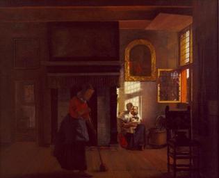 View Original:Pieter_de_Hooch_-_Woman_and_child_by_a_window,_with_a_maid_sweeping.jpg (650x529)