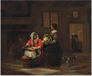 | Keywords: Pieter de Hooch - A Woman with a Duck and a Woman with a Cabbage.jpg Artwork creator Pieter de Hooch Title A Woman with a Duck and a Woman with a Cabbage ca 1677 “1684 oil canvas cm 63 75 unknown Private collection P C Sutton Pieter de Hooch Oxford 1980 cat no 136 ; C Hofstede de Groot Beschreibendes und Kritisches Verzeichnis der Werke der Hervorragendsten Hollandischen Maler des XVII Jahrhunderts vol I Paris 1907 cat no 53 object history credit line http //www artnet com/artists/pieter-de-hooch/k C3 BCcheninterieur-mit-zwei-frauen-bei-der-arbeit-lMvAaiWEOoNw65WfWG2p4g2 Other versions PD-old-100 Genre paintings by Pieter de Hooch Cabbage in art People in rooms in art 1670s paintings in private collections 1680s paintings in private collections |