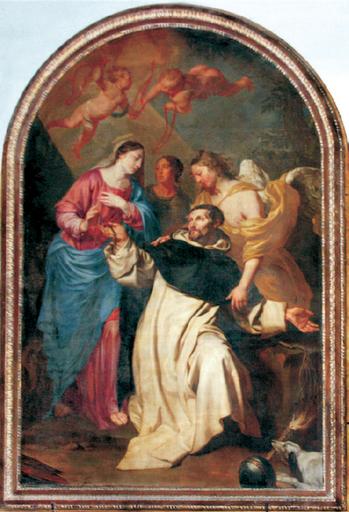 | Keywords: Pieter Thijs (attr.) - St. Dominic receiving the Rosary from the Virgin.jpg Attributed to en St Dominic receiving the Rosary from the Virgin century 17 Sanzsalazar J 2009 Una nueva pintura de Peter Thijs identificada en la Colegiata de Santa Gertrudis de Nivelles Valonia Archivo Español de Arte 82 325 79-86 Oil canvas cm 260 190 Collégiale Sainte-Gertrude Nivelles Belgium Other versions PD-old-100 History and allegorical paintings by Pieter Thijs Interior of église Sainte-Gertrude Nivelles Baroque paintings of Virgin Mary 17th-century paintings of Christian saints |