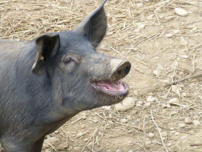 Keywords: pig farm animal black oink livestock