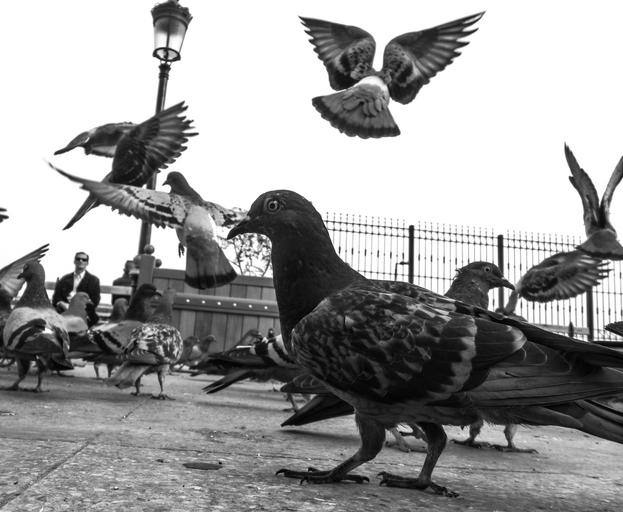 Keywords: pigeon bird animal nature pen animals sky plumage relaxation park city relax