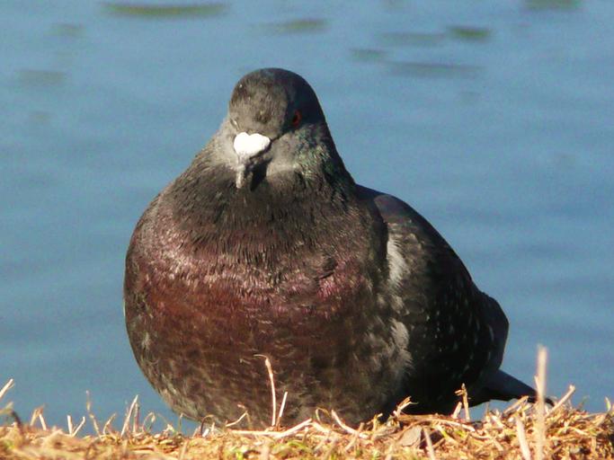 Keywords: pigeon bird sitting water lake peace feathers pet fowl wings