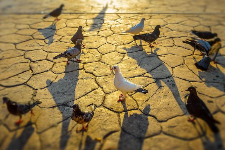 Keywords: pigeons birds nature dove wings ornithology feathers light flock animal sunlight