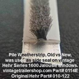 MAKE A MEME View Large Image Most late 50s and early 60s vintage trailers used Hehr Jalousie windows. The plastic backing of this pile weatherstrip is identical to the width and thickness of the original aluminum-backing. vintagetrailershop.com Part# 0114E Original ...