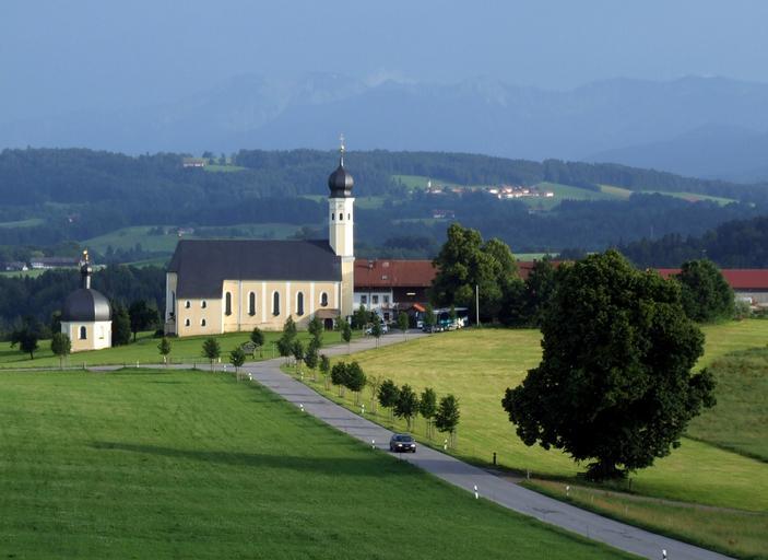 Keywords: pilgrimage church church place of pilgrimage wieskirche baroque baroque church attractive idyllic bavaria landscape mountains meadow forest germany deer mountain evening sunset romantic