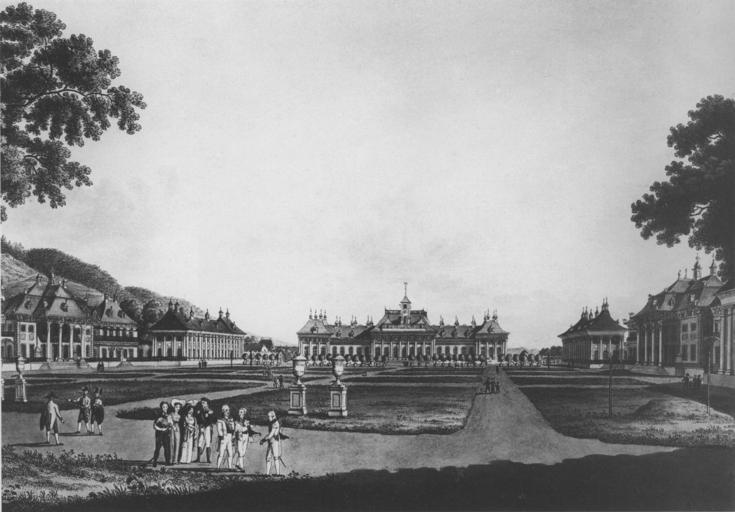 | Keywords: Pillnitz Lustgarten Carl August Richter 1825.jpg en Pillnitz Garden and the New Palace around 1825 de Die Pillnitzer Schlossanlage um den Lustgarten mit Neuem Palais Im Vordergrund König Friedrich August I mit Familie Kolorierter Kupferstich um 1825 Scan Carl_August_Richter circa 1825 PD-old-70-1923 Pillnitz Castle Frederick Augustus I of Saxony |