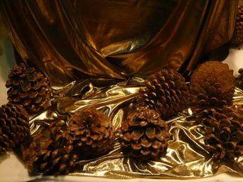 Keywords: pine cones decoration christmas window cloth golden shine