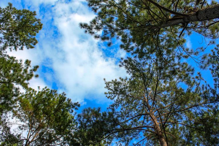 Keywords: pine forest view forest pine tree natural outdoor wood spring pine tree woodland sky fresh nature