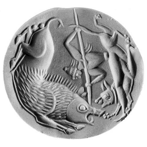 Keywords: Pini-eber-tonabdruck-I 294 2.JPG en ancient minoan seal showing pig clay model de antikes minoisches Siegel eines Ebers Tonabdruck own Ingo Pini 2010 Minoan seals Minoan seal impressions