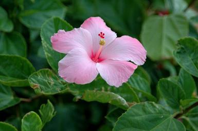 Keywords: pink hibiscus flower blossom bloom plant leaves flora nature green blooming summer natural garden bright delicate outdoors chinese tropical bush fragrant