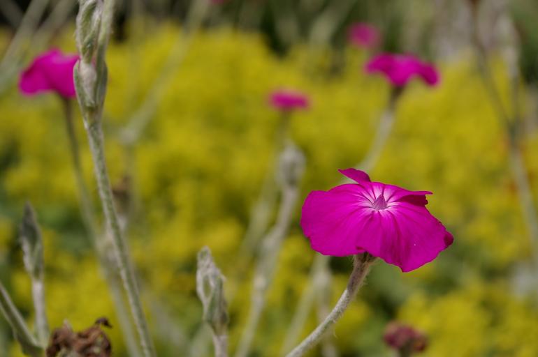 Keywords: pink pink blossoms garden flowers nature plant flower bloom summer pink flower petals distinctive bud campion flower bed frauenmantel background