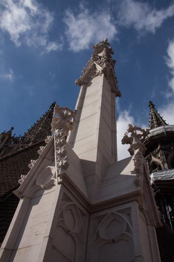 | Keywords: pinnacles stone chiseled slim pointed turret gothic architecture superelevation buttresses aesthetic function static construction weight stabilize achteckiger shank leib tracery ornament middle section finial cornice crabs pyramidal peak east tower main tower münster ulm cathedral building church ulm city |