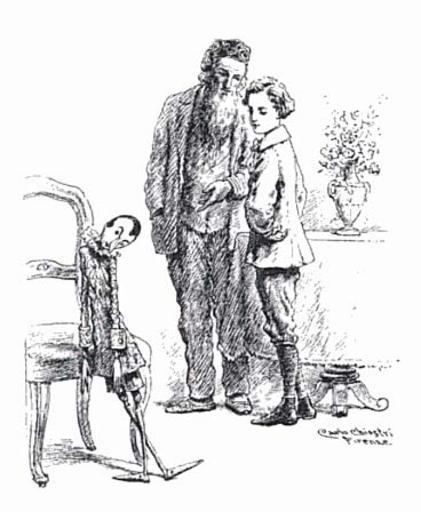 | Keywords: PinocchioChiostri28.jpg it Pinocchio diventa un bambino in carne ed ossa Illustrazione di Carlo Chiostri 1863 - 1939 dal libro di Collodi Le avventure di Pinocchio 1901 Scan of a book Collodi Le avventure di Pinocchio 1901 Carlo Chiostri 1863 - 1939 1901 Carlo Chiostri Le avventure di Pinocchio PD-old |