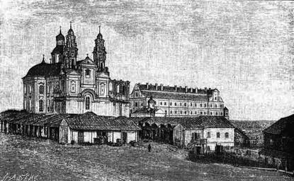 Keywords: Pinsk, Rynak. Пінск, Рынак (XIX) .jpg be-tarask Пінск Касьцёл і калегіюм езуітаў Большая энциклопедия Ки илла и ефодия Author century 19 PD-old History of Pinsk Church of St Stanislaus in Pinsk Trade rows in Pinsk Pinsk in art