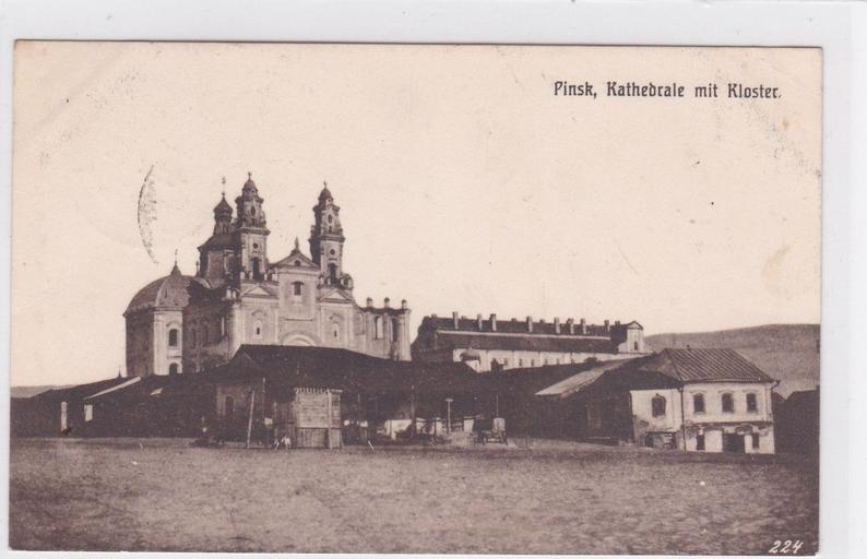 Keywords: Pinsk, Rynak. Пінск, Рынак (1917).jpg Пінск Pinsk пляц Рынак plac Rynak Касьцёл і калегіюм езуітаў www ebay de author 1917 PD-old-70 History of Pinsk Church of St Stanislaus in Pinsk