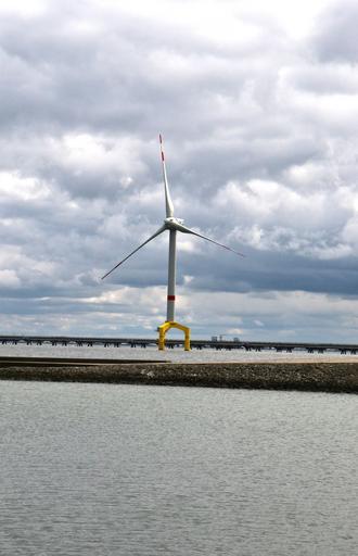Keywords: pinwheel wind power sea offshore energy ecology environmental technology north sea power generation wind turbine blue rotor blades rotor clouds landscape wing wind energy windräder wind