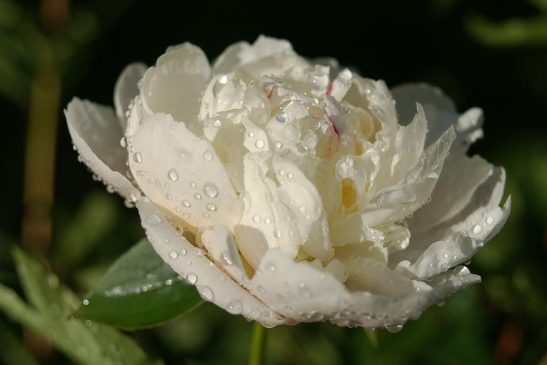 Keywords: pion flower festiva maxima drops rain sweden plant drop of water summer white flowers