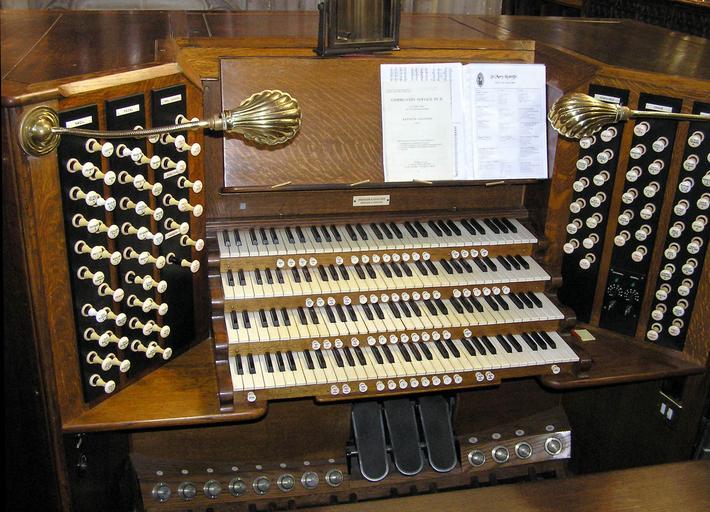 Keywords: Pipe.organ.console.arp.jpg The organ console in St Mary Redcliffe church Bristol England Built by Harrison and Harrison in 1912 and restored in 1990 Visible are four manuals combination pistons below each manual stops to the left and right of the manuals toe studs and three expression pedals there being no crescendo pedal The pedalboard is just out of sight at the bottom the sharps can barely be seen 2005-04-02 own assumed Arpingstone Taken by Adrian Pingstone in April 2005 and released to the public domain St Mary Redcliffe interior Pipe organs in Bristol Pipe organ consoles Organ manuals Organ stops Harrison and Harrison |