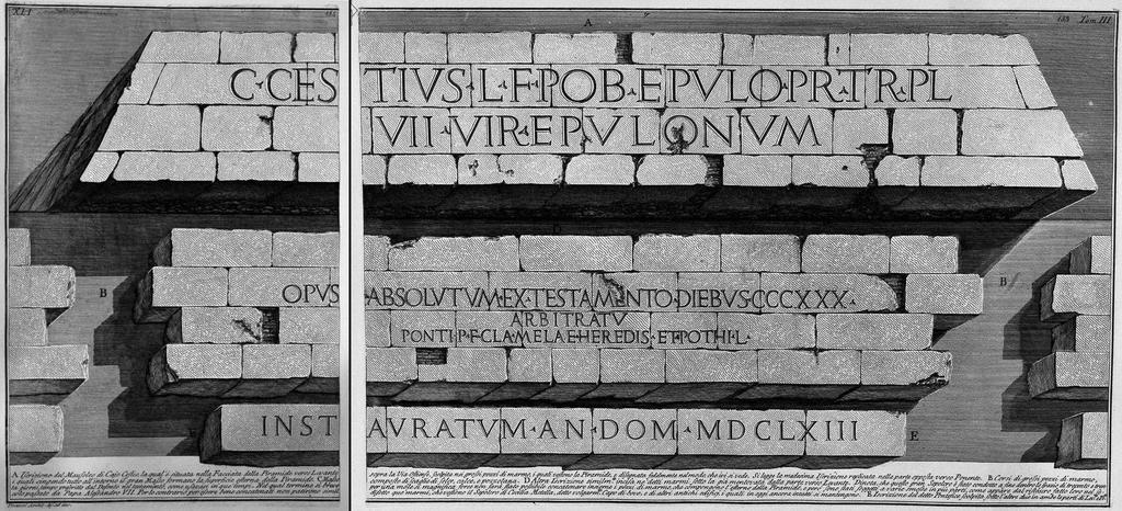 MAKE A MEME View Large Image Piranesi-3-41.jpg 3 3-40 3-42 XLI Inscriptions on the pyramid of Caius Cestius <gallery> File Piranesi-3042 jpg File Piranesi-3041 jpg </gallery> ru <br> A «Гай Цестий Эпулон сын Люция п ето т ибун ...