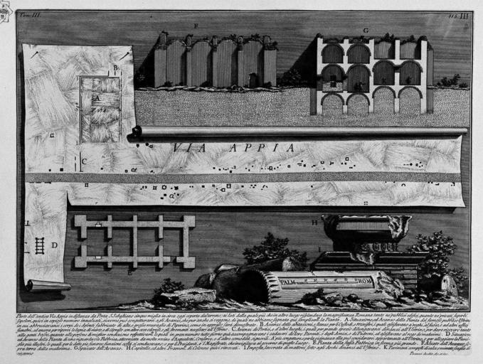 View Original:piranesi_roman_antiquities_3_plate_iii_part_ancient_appian_way_about_five_miles_port.jpg (1500x1131)