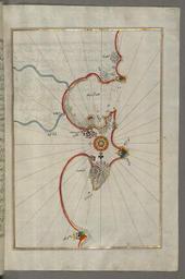 Keywords: Piri Reis - Map of the Eastern Mediterranean Coastline with the Cities of Jaffa and Caesarea - Walters W658313B - Full Page.jpg This folio from Walters manuscript W 658 contains a map of the eastern Mediterranean coastline here marked as the Gulf of Aqaba with the cities of Jaffa Yafah and Caesarea Qaysariyah present-day Israel late 11th century AH/AD 17th century-early 12th century AH/AD 18th century Ottoman ink and pigments on laid European paper cm 34 24 accession number W 658 313B 79889 Ahmad Afandi date and mode of acquisition unknown see folio 4a Ali Afandi date and mode of acquisiton unknown see folio 4a Sayyid Ali Qapudan date and mode of acquisition unknown see folio 1a Sultan Mahmud Khan date and mode of acquistion unknown waqf seal and followed by a bequest statement now erased and the seal of the inspector of wakfs Mustafá Tahir see folio 4a Henry Walters Baltimore date and mode of acquisition unknown Walters Art Museum Henry Walters Acquired by Henry Walters place of origin Turkey Walters Art Museum license 2D Piri Reis Kitab-ı Bahriye Walters MS 658 Media contributed by the Walters Art Museum needs category review |