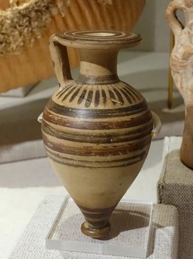 Keywords: Piriform Aryballos, oil jar, Etrusco-Corinthian, Tuscany, Italy, 625-600 BC, terracotta - Spurlock Museum, UIUC - DSC05683.jpg en Exhibit in the Spurlock Museum University of Illinois at Urbana-Champaign - Urbana-Champaign Illinois USA This work is old enough so that it is in the public domain 2015-06-14 15 22 18 own Daderot other versions cc-zero Classical ceramics in the Spurlock Museum Aryballoi