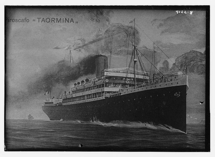 Keywords: Piroscafo TAORMINA (LOC) (16149365616).jpg Bain News Service publisher Piroscafo TAORMINA between ca 1915 and ca 1920 1 negative glass ; 5 x 7 in or smaller Notes Title from unverified data provided by the Bain News Service on the negatives or caption cards Forms part of George Grantham Bain Collection Library of Congress Format Glass negatives Rights Info No known restrictions on publication Repository Library of Congress Prints and Photographs Division Washington D C 20540 USA http //hdl loc gov/loc pnp/pp print hdl loc gov/loc pnp/pp print General information about the Bain Collection is available at http //hdl loc gov/loc pnp/pp ggbain hdl loc gov/loc pnp/pp ggbain Higher resolution image is available Persistent URL http //hdl loc gov/loc pnp/ggbain 23690 hdl loc gov/loc pnp/ggbain 23690 Call Number LC-B2- 4122-8 https //www flickr com/photos/library_of_congress/16149365616/ Piroscafo TAORMINA LOC LOC-image ggbain 23690 https //www flickr com/people/8623220 N02 The Library of Congress http //www loc gov/rr/print/195_copr html noknown The Library of Congress Flickr Commons PD-Bain The Library of Congress http //flickr com/photos/8623220 N02/16149365616 2015-02-15 03 44 45 pd |