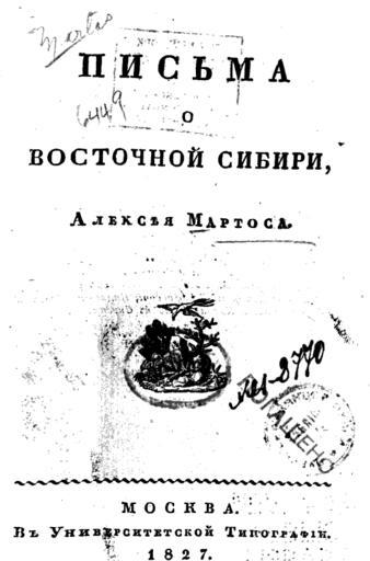 Keywords: Pisma o Vost Sibiri.png ru Обложка книги А И а тоса Письма о Восточной Сиби и http //books google ru/books id NWlGAAAAYAAJ printsec frontcover dq D0 9C D0 B0 D1 80 D1 82 D0 BE D1 81+ D0 90 D0 BB D0 B5 D0 BA D1 81 D0 B5 D0 B9 hl ru ei ZOOJTI6qMcK5jAfV3LyCBg sa X oi book_result ct book-thumbnail resnum 1 ved 0CC0Q6wEwAA v onepage q f false А И а тос 1827 PD-old Письма о восточной Сиби и 1827 by MARTOS