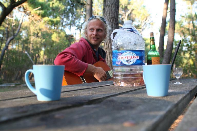 Keywords: Pisnickar.JPG en Danny Danier own francie Happystudent 2010 Water bottles Guitarists with acoustic guitars Blue cups