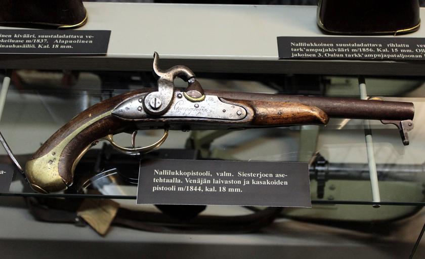 | Keywords: Pistol in Northern Ostrobothnia Museum Oulu.JPG en A percussion pistol model 1844 caliber of 18mm used by Russian Navy and Cossacks Pistol has been manufactured in the Sestroretsk gun factory fi Venäjän laivaston ja kasakoiden käyttämä nallilukkopistooli m/1844 kal 18mm Pohjois-Pohjanmaan museossa Oulussa Pistooli on valmistettu Siestarjoen asetehtaalla 2012-09-08 11 00 12 own Estormiz 65 017845153809 25 475299835205 cc-zero Uploaded with UploadWizard 2012 in Oulu Interior of the Northern Ostrobothnia museum Percussion pistols Pistols of Russia September 2012 in Finland Taken with Canon EOS 600D |