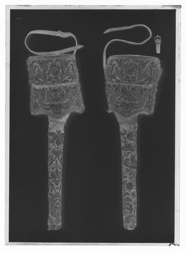 | Keywords: Pistolhölster, sadelhölster - Livrustkammaren - 77768-negative.tif 1600-talets mitt Hölster klätt med blå sammet med reliefbroderi av guld- och silvertråd Rektangulär kappa med ficka kantad med guldgalon och frans Kappan fodrad med mörkbrunt läder Hölsterremmar av läder klädda med sammet med reliefbroder Oval sölja av förgylt stål Insidan av hölstrets övre del klädd med sammet utan ornering original caption mid other date century 17 leather S - SADLAR OCH HÄSTUTRUSTNING material läder - velvet Färg blå S - SADLAR OCH HÄSTUTRUSTNING material sammet - gold thread S - SADLAR OCH HÄSTUTRUSTNING material guldtråd - silver thread S - SADLAR OCH HÄSTUTRUSTNING material silvertråd - steel S - SADLAR OCH HÄSTUTRUSTNING material stål g 880 size mm 630 150 LRK place of origin original filename LN_B04359_007239 54106 inventory number LRK 17511 77768 CC0 Pistolhölster sadelhölster - Livrustkammaren - 77768 tif |