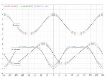 Keywords: Piston motion graphs.png Graphs showing piston motion for various half strokes for an internal combustion engine joecar 18 11 17 May 2006 UTC 2006-05-17 own assumed Joecar Automotive technologies Pistons