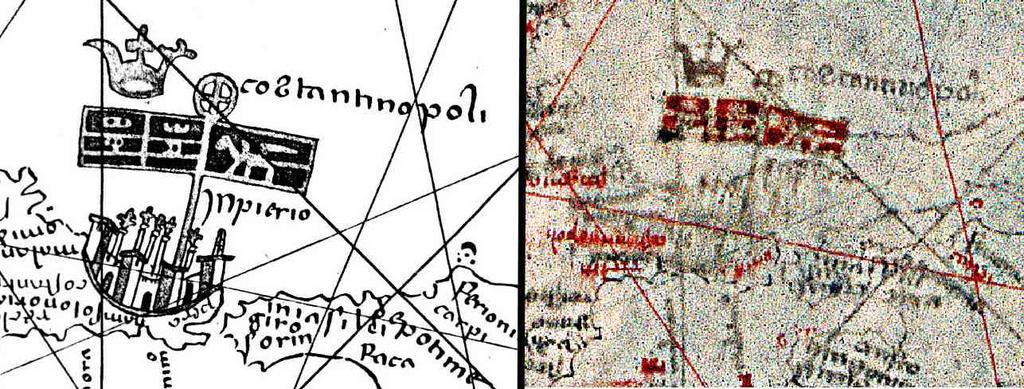Keywords: Pizigani 1367 Constantinople.jpg en The conquerors flags over Constantinople point to a portolan of around 1210 First discovered by Fischer in 1881 Left Jomard right photography enlargement PD-old-100 Pizigano and Jomard 1367 1849 Credit line http //en wikipedia org/wiki/User 3APortolanero Wikimedia Commons CC-BY-3 0 1300s maps Maps in Italian |