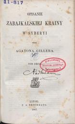 | Keywords: PL Agaton Giller-Opisanie zabajkalskiej krainy w Syberyi t. 2 001.jpeg en book pl książka http //polona pl/dlibra/doccontent2 id 27226 Cyfrowa Biblioteka Narodowa Creator Agaton Giller Opisanie zabajkalskiej krainy w Syberyi Series title II F A Brockhaus 1867 Lipsk pl PD-old-100 derivative works PL Agaton Giller-Opisanie zabajkalskiej krainy w Syberyi t 2 001 logo jpeg Opisanie zabajkalskiej krainy w Syberyi tom 2 | ||||