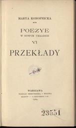 Keywords: PL Marya Konopnicka-Poezye w nowym układzie VI Przekłady 009.jpeg en book pl książka http //polona pl/dlibra/doccontent2 id 8802 Cyfrowa Biblioteka Narodowa Creator Maria Konopnicka Poezye w nowym układzie Przekłady Series title VI Gebethner i Wolff W L Anczyc i Spółka 1904 Warsaw pl PD-old-100 Poezye w nowym układzie Tom VI Przekłady |